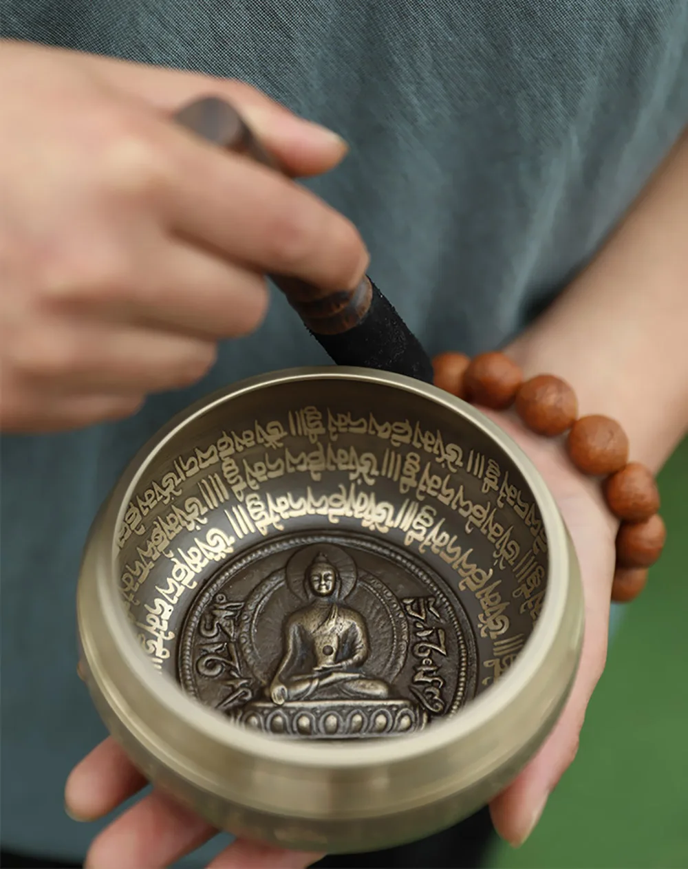 The 11cm Nepal Buddhist Singing Bowl is a beautifully handmade brass instrument, traditionally used in Tibetan and Nepalese mindfulness practices. When played, it produces a clear, resonant tone that fills any space with a sense of calm and presence — perfect for meditation, yoga, or quiet reflection.