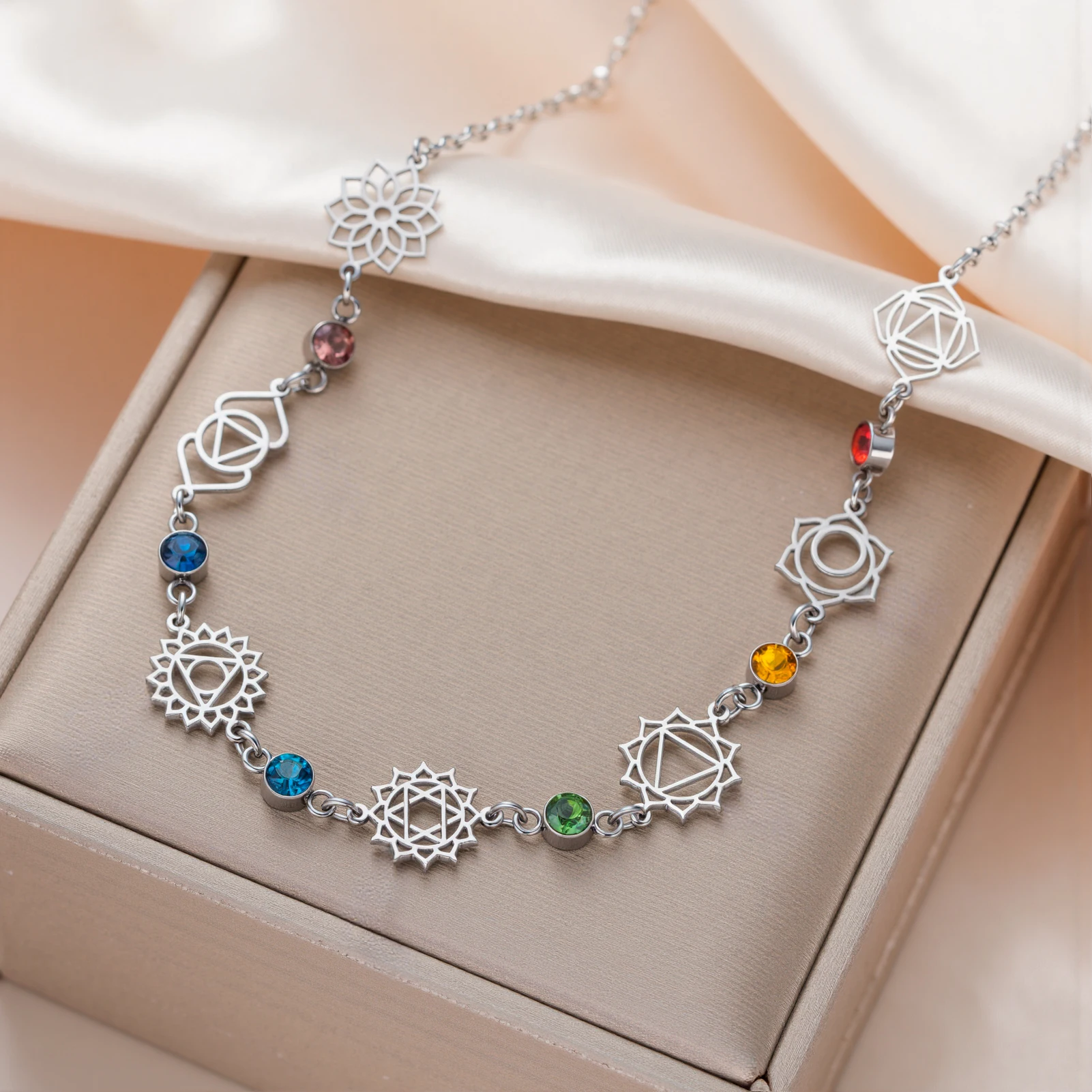 The 7 Chakra Harmony Necklace is designed to celebrate colour, balance, and calm. Each element in its silver-tone chain represents mindful living and personal harmony — a simple, elegant symbol of inner steadiness.