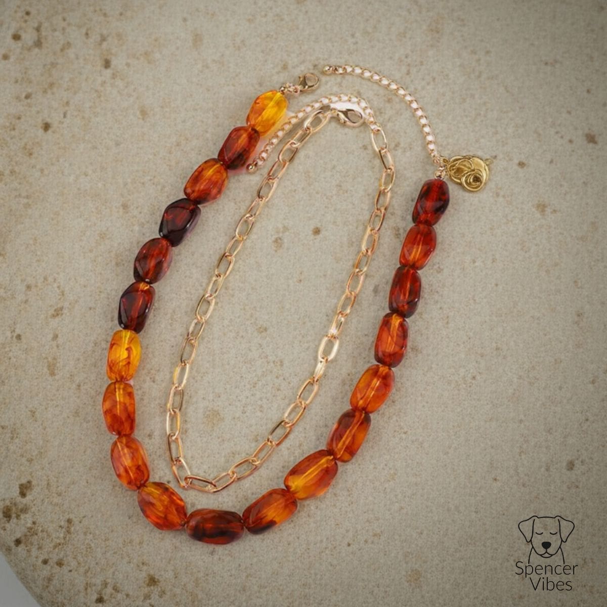 Amber-Tone Beaded Necklace with Gold Chain Accent