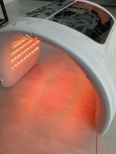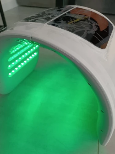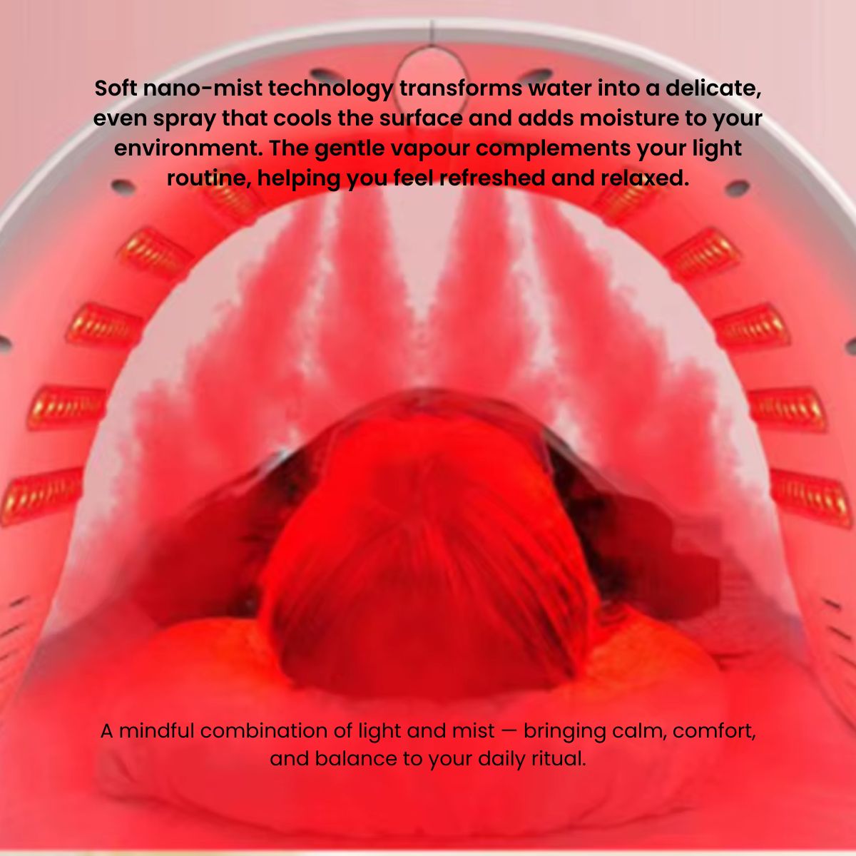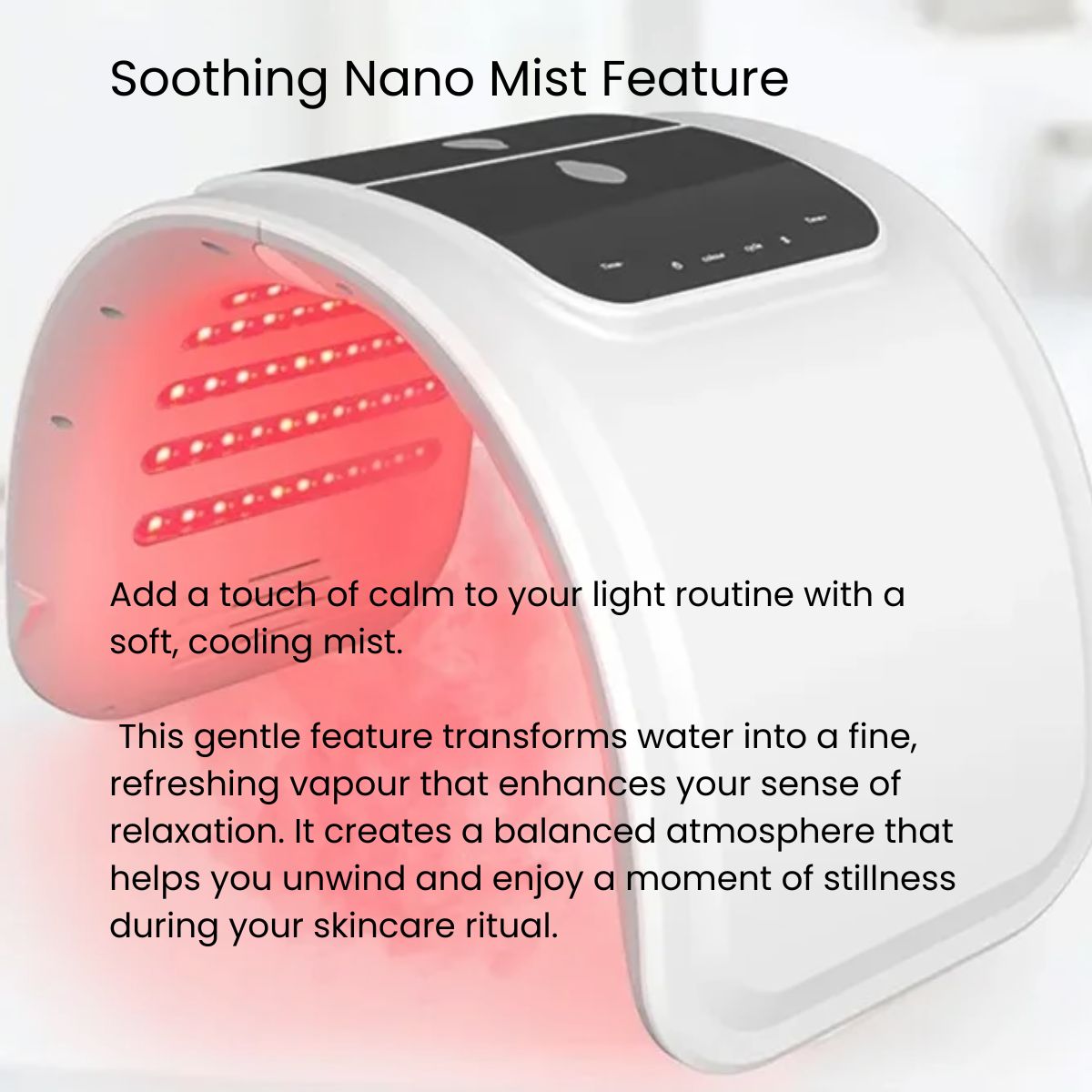 Caring for your skin can also be a mindful act. The AuraGlow system combines comfortable LED illumination with a delicate cooling mist option, creating a calm sensory experience for both skin and spirit.