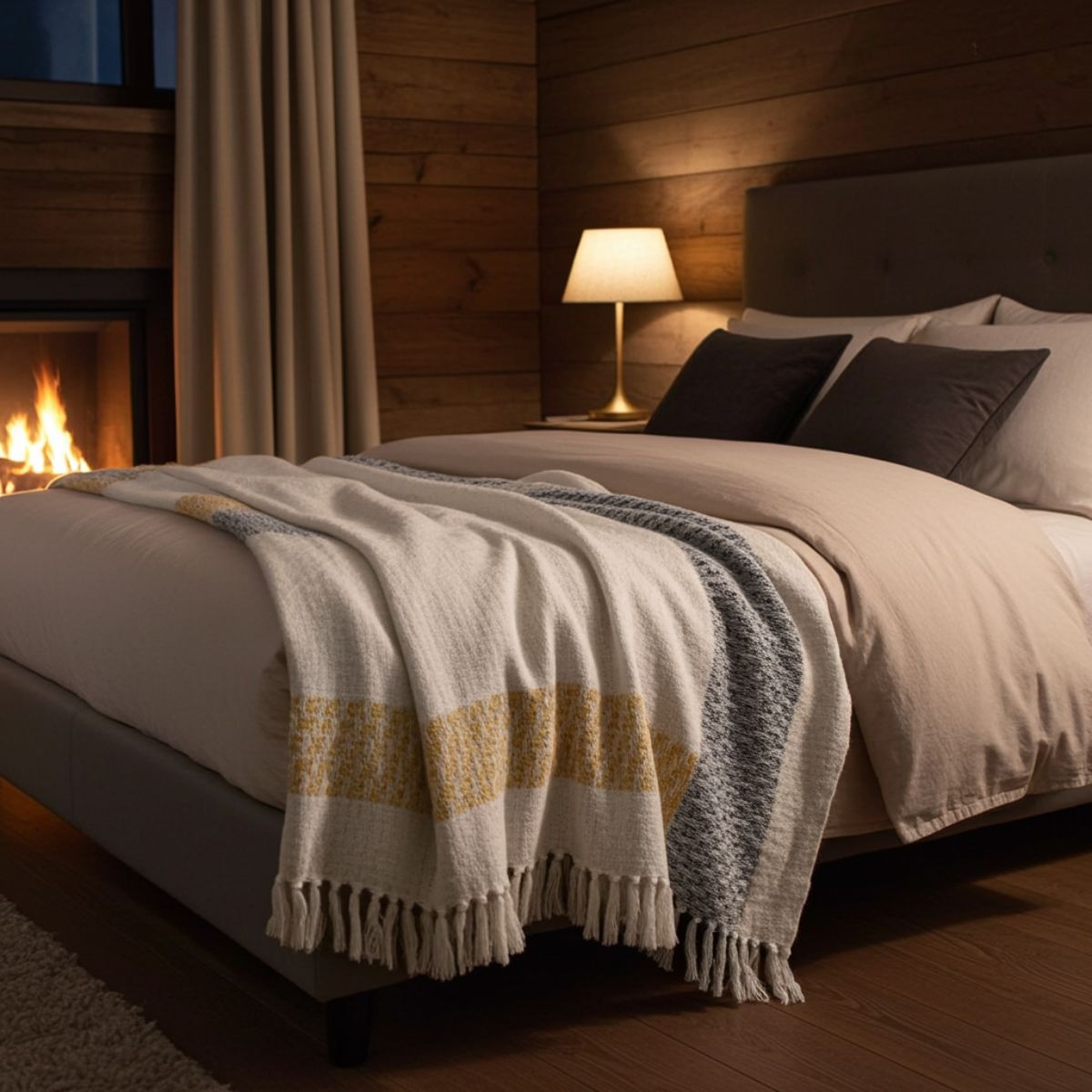 Drape it over a sofa, layer it across a bed, or wrap it around your shoulders on cooler evenings. Its generous 125 × 150 cm size makes it practical as well as decorative, while the neutral colour palette allows it to blend easily with existing furnishings.