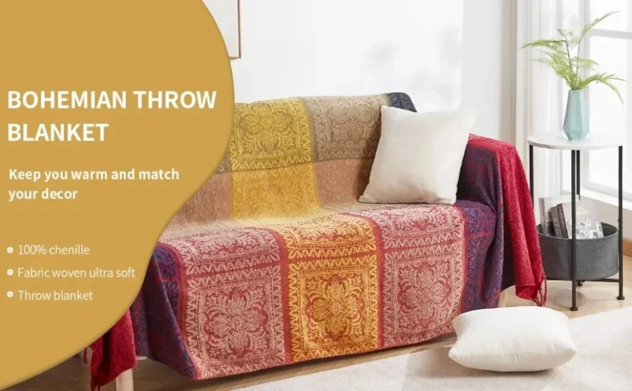 Available in two generous sizes — 60″ × 75″ (2.1 lb) and 87″ × 102″ (3.6 lb) — this chenille blanket offers cosy coverage for sofas, chairs, and beds. The fabric is wonderfully soft and smooth against the skin, while the medium weight provides just the right balance of warmth and breathability. Whether you’re curling up with a book, watching a film, or decorating your living space, this blanket adds instant comfort and visual appeal.