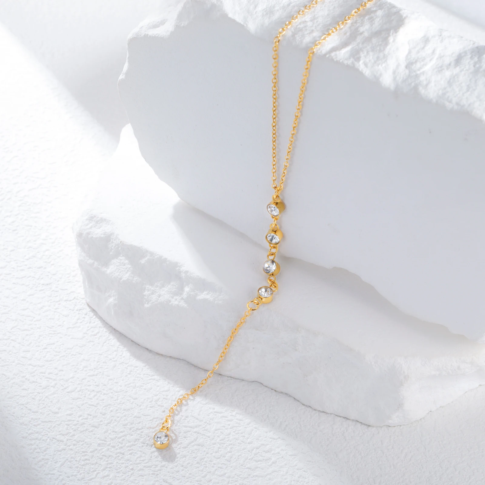 Clear Zircon Long Chain Necklace – Elegant Minimalist Jewellery for Women