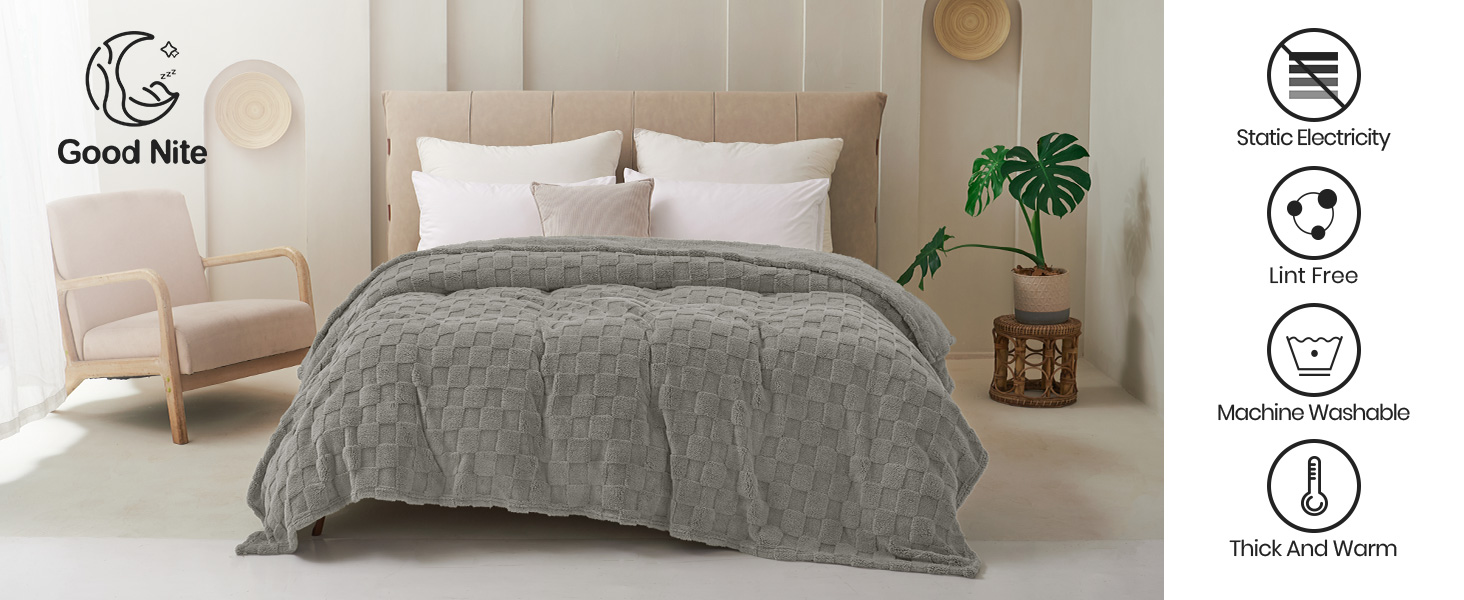 The elegant grid pattern adds a touch of modern style to your home, while the breathable fleece ensures year-round comfort without feeling heavy. Whether you’re enjoying a quiet evening with a book or watching your favourite series, this blanket offers the ideal balance of warmth and softness.