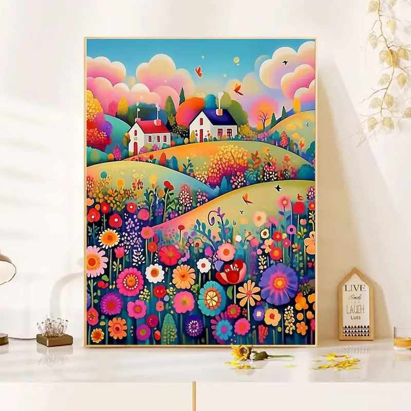 Step into a world of vibrant blooms and rolling hills as you bring this Garden House Oil Painting by Numbers to life. With every brushstroke, you'll find yourself relaxing into the moment, creating a joyful masterpiece filled with colour and charm.