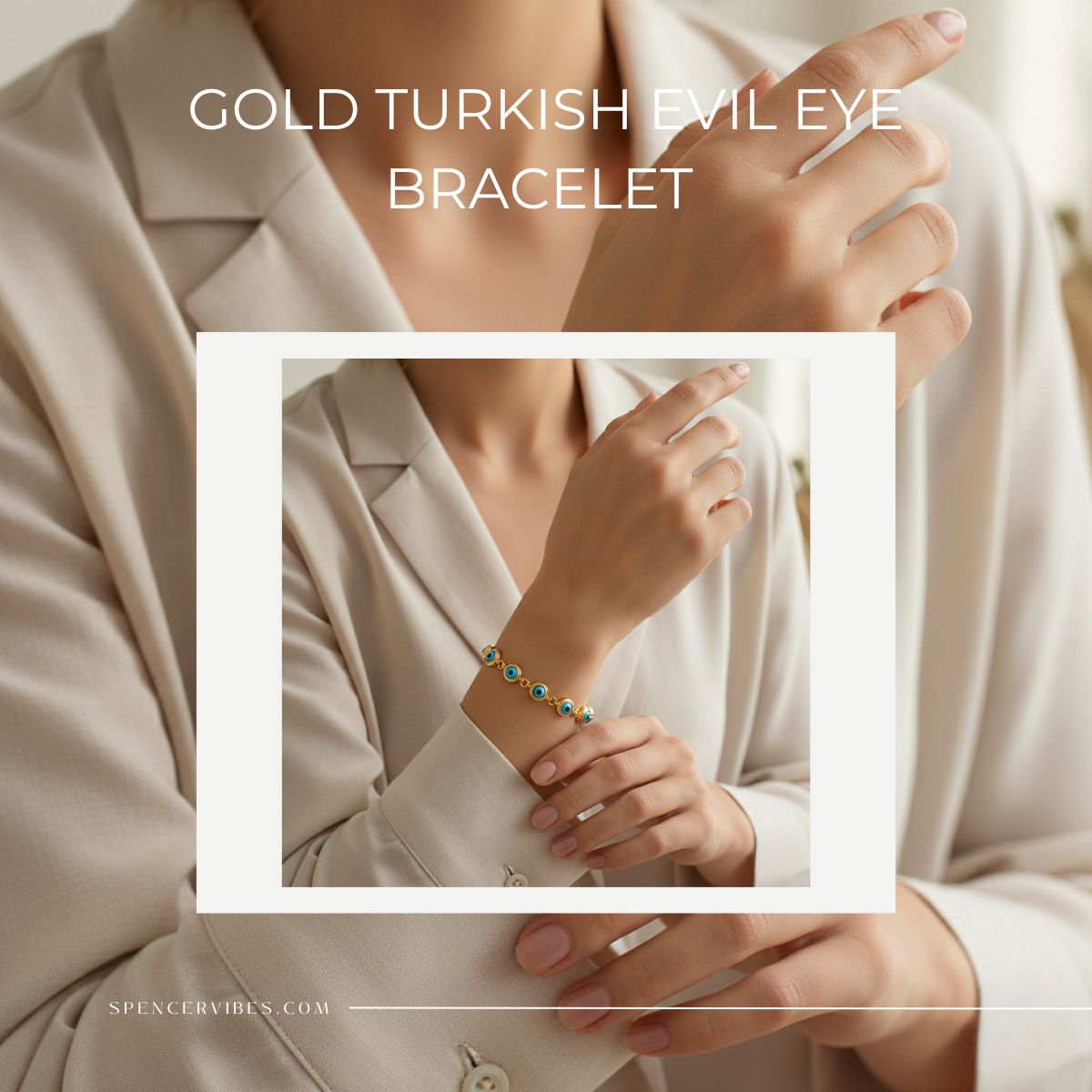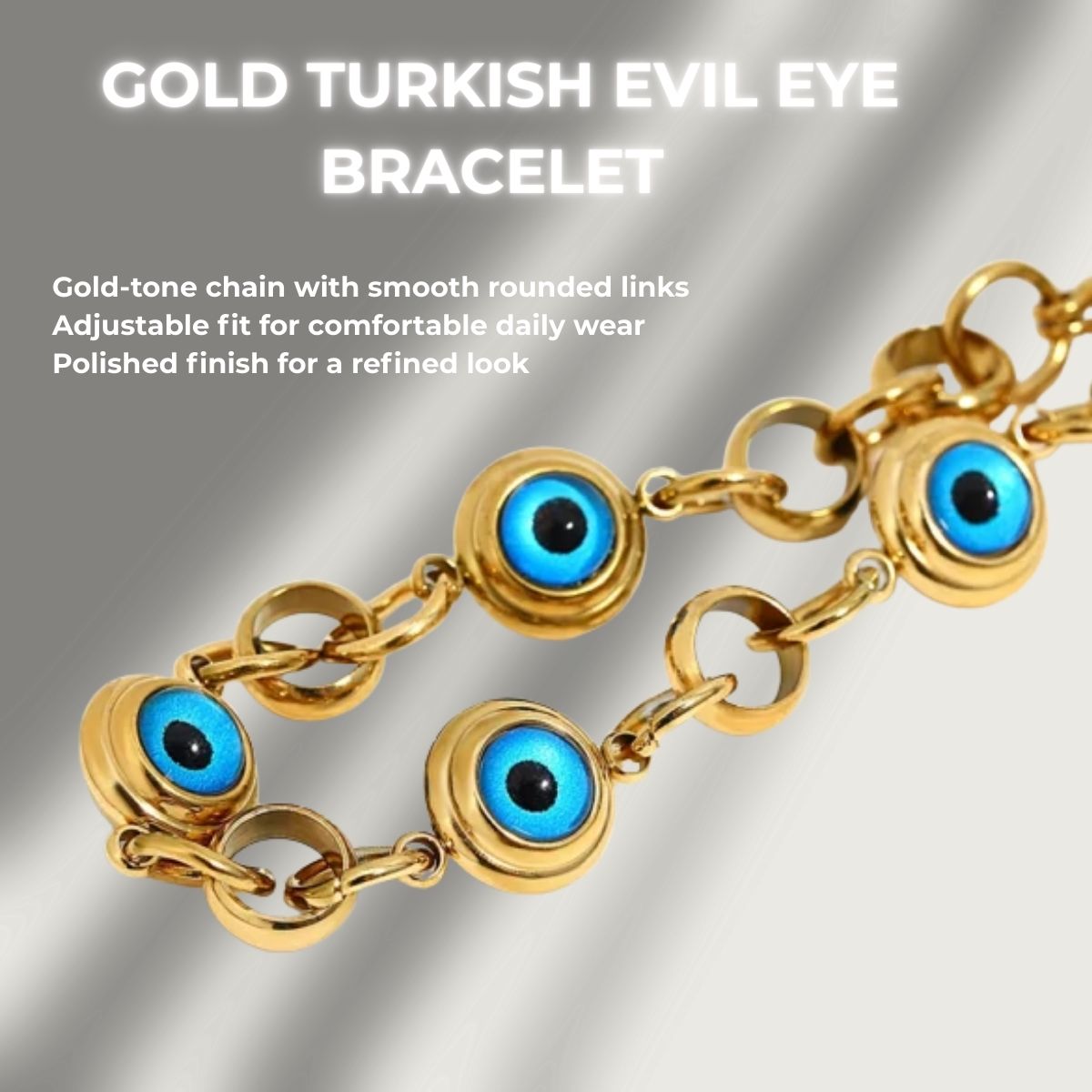 Gold Turkish Evil Eye Bracelet | Adjustable Chain Design