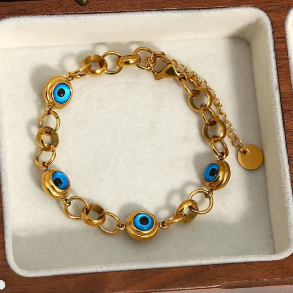 This piece makes a thoughtful gift as well. The Turkish evil eye is a well-loved symbol in jewellery traditions, and many wear it as a sign of good wishes or positive sentiment. The gold finish keeps the bracelet timeless, and the sturdy clasp adds extra reassurance during daily wear.
