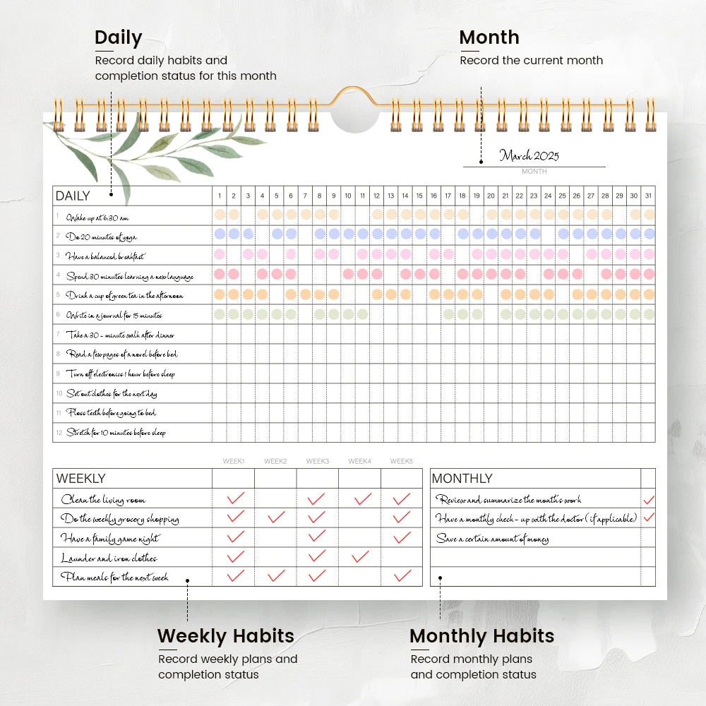 12 Recordable Months – Track an entire year of habits at your own pace — start any time, stay consistent.