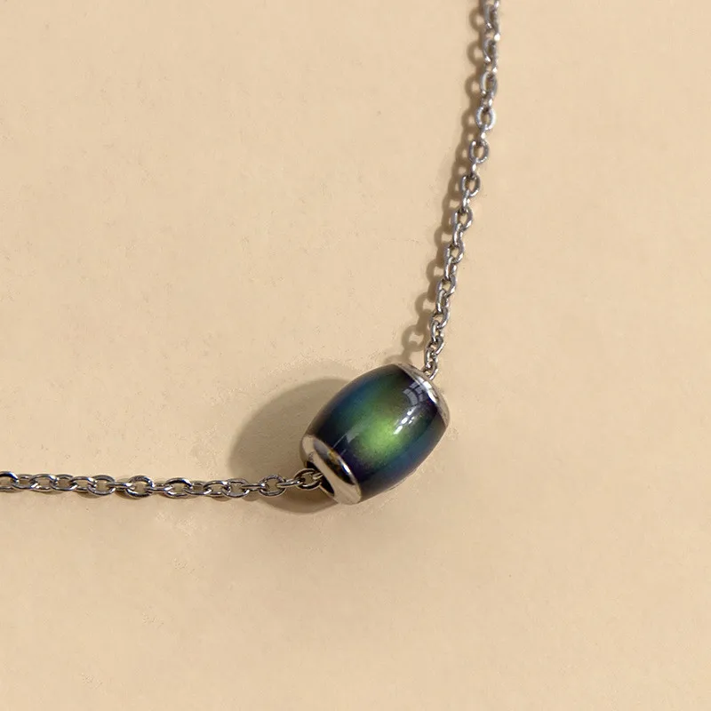 The Mood Necklace is a simple yet captivating piece that changes colour with temperature, reflecting your surroundings and personal warmth. Its teardrop or bead-style pendant shimmers through beautiful gradients of blue, green, and amber — a timeless symbol of calm and creativity.