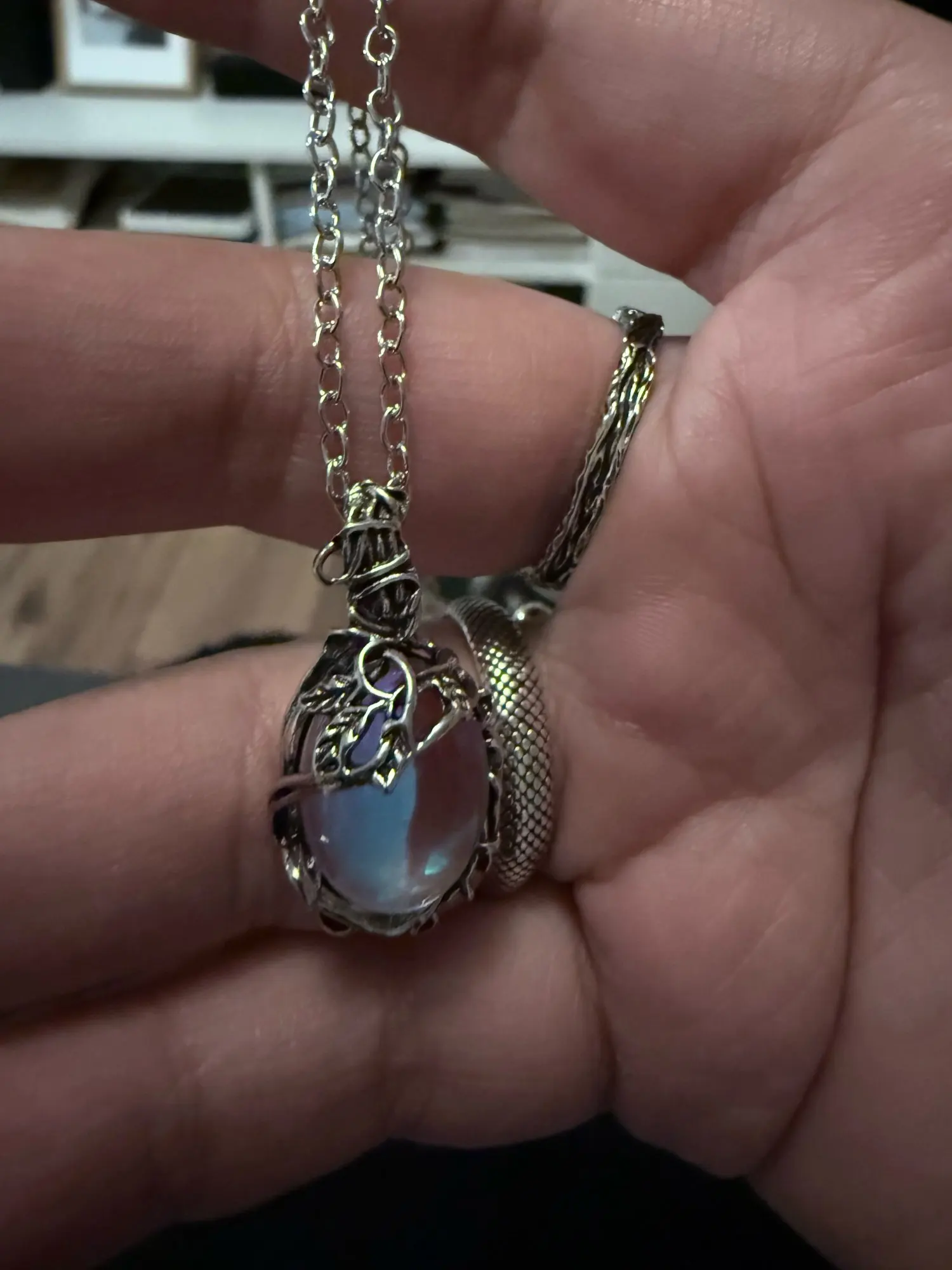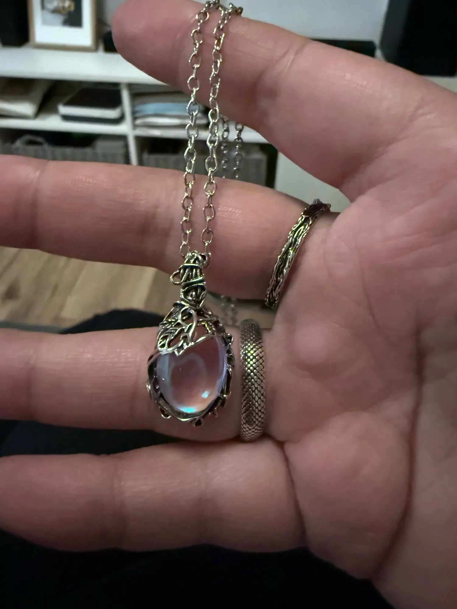 The pendant is large and finely crafted. The moonstone doesn't look like itself, as it quite confidently shimmers into a lilac purple. Maybe it's a ca...More