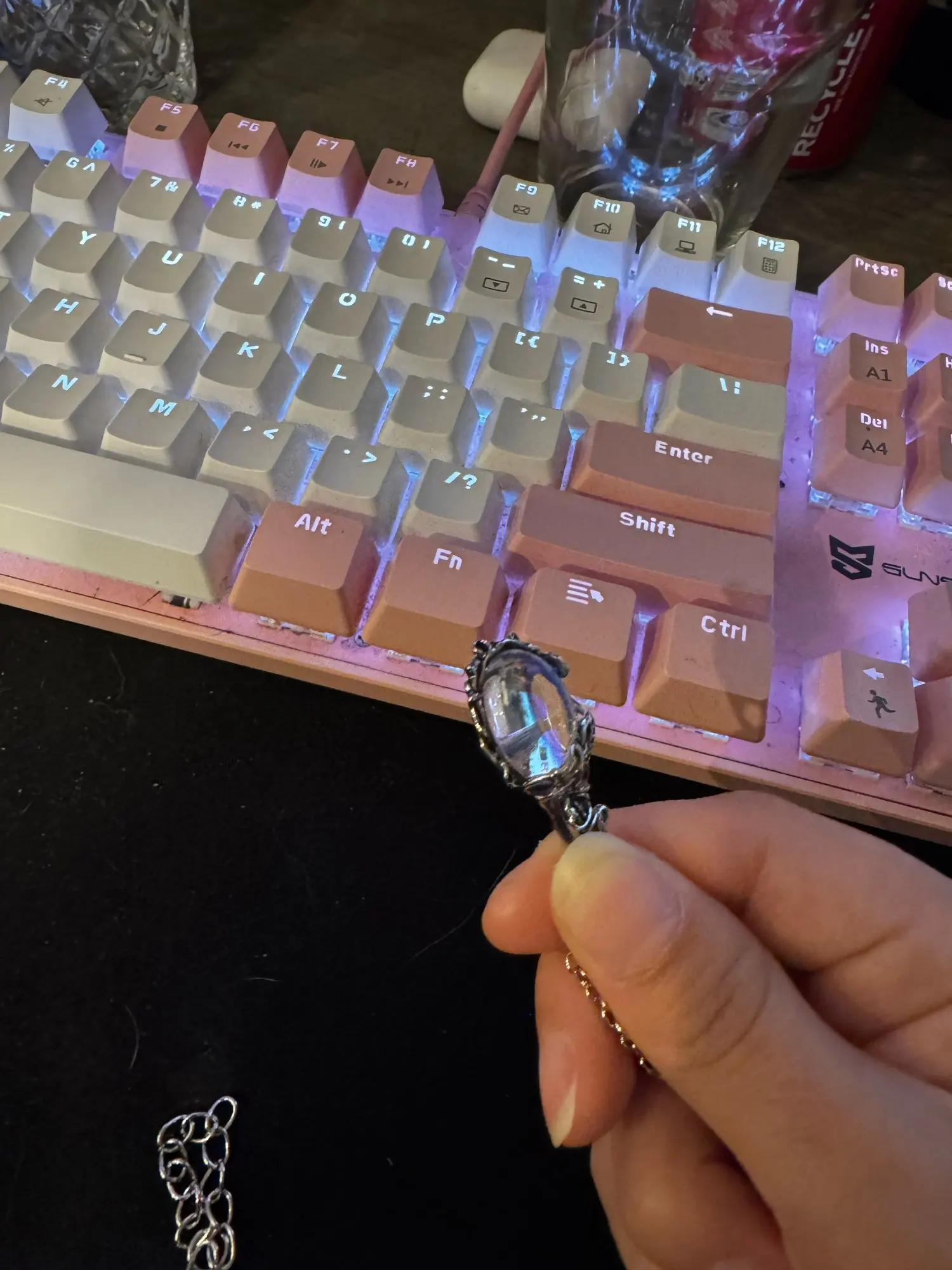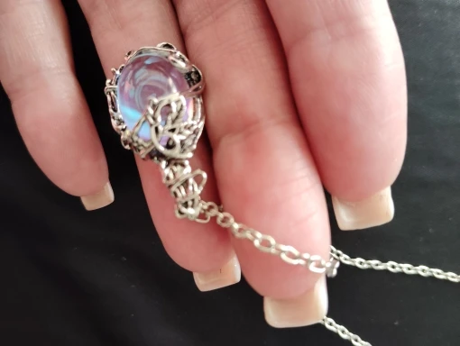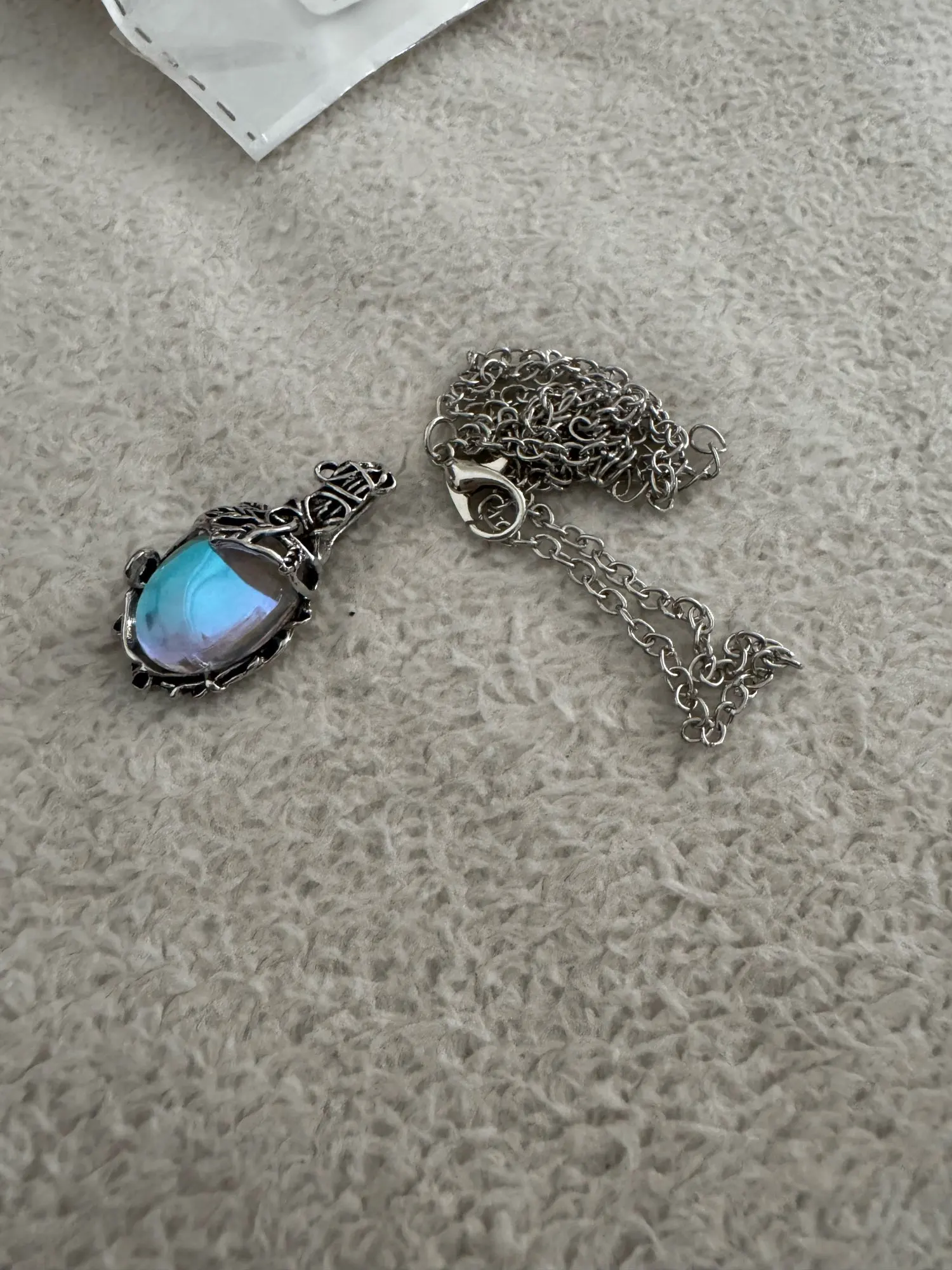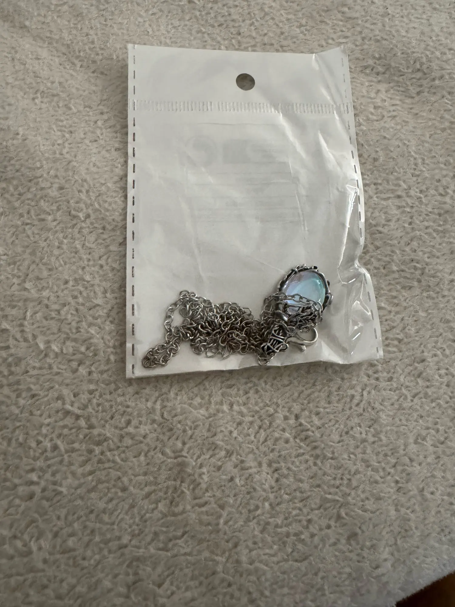 It's beautiful, the stone looks different depending on where the light hits it. It has the perfect size to not be too big or too small. The chain it comes with looks strong and also has extra holes at the end. You can change the chain if you want because it comes off easily. It wasn't the seller's fault, but the carrier's, but it arrived late.