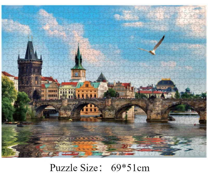 Immerse yourself in the charm of old Europe with the Prague Oil Painting Jigsaw Puzzle. Measuring 69 x 51cm when complete, this 1000-piece puzzle captures the romantic architecture and warm tones of Prague in an intricate, painterly style — perfect for a mindful evening or a weekend project.