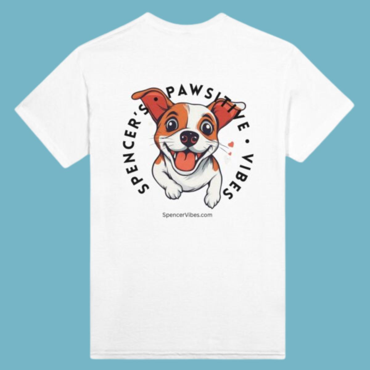 Introducing The Exclusive Spencer’s Pawsitive Vibes T-Shirt – a heartwarming tribute to the boundless joy and infectious energy of Spencer, the delightful Jack Russell who never fails to bring a smile to your face. Crafted for dog lovers and happiness seekers alike, this t-shirt captures the essence of playful positivity and serves as a daily reminder that life is best lived with a wagging tail and an open heart.