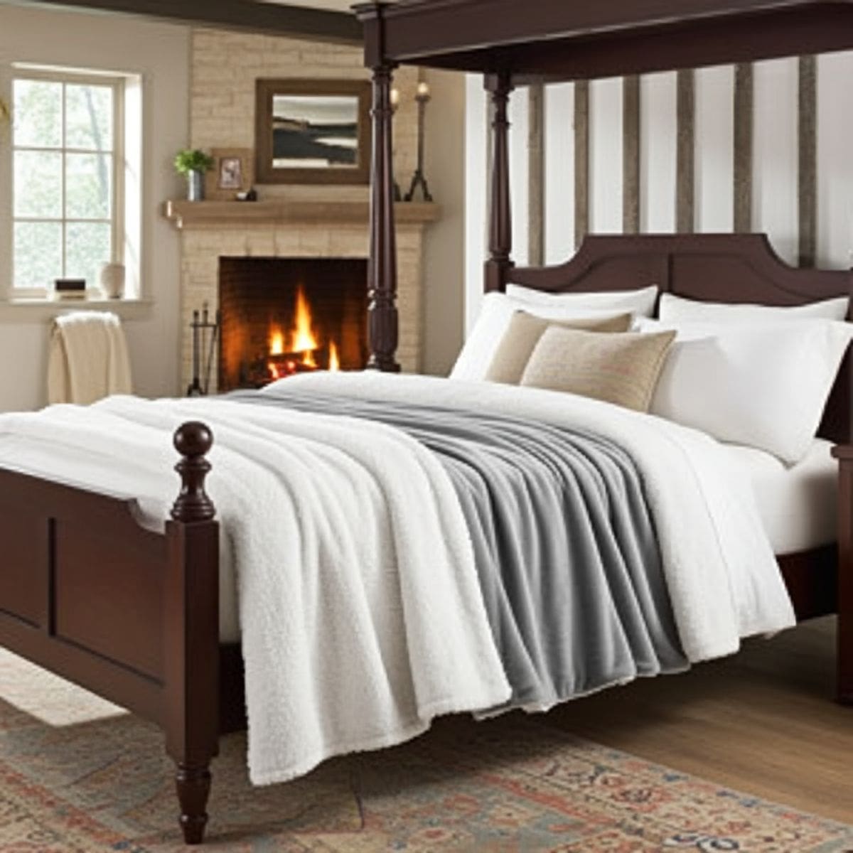 One side features a smooth fleece finish, while the reverse offers a plush sherpa lining that holds warmth without feeling heavy. The result is a blanket that feels cocooning but breathable—comfortable across seasons, not just winter.