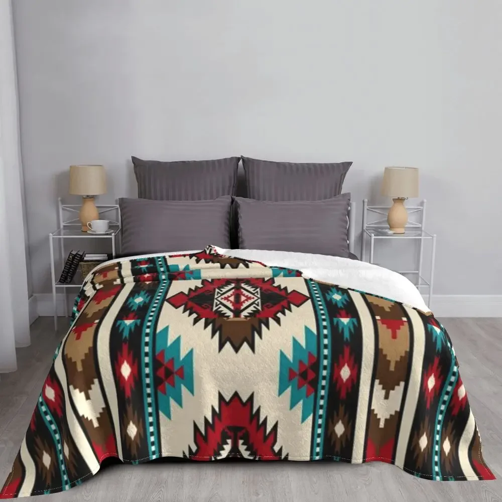 The Vintage Native American Flannel Blanket combines soft flannel comfort with bold geometric design. Lightweight yet warm, it’s perfect as a sofa throw, bedspread, or travel companion.