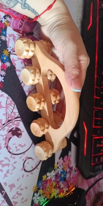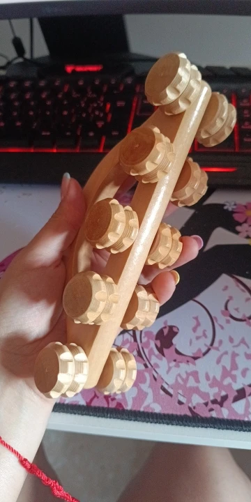 Made from smooth, polished wood, this massager fits comfortably in your hand and glides easily across the skin. Its compact size makes it perfect for use at home, in the office, or while travelling — a natural way to enjoy a few mindful moments wherever you are.